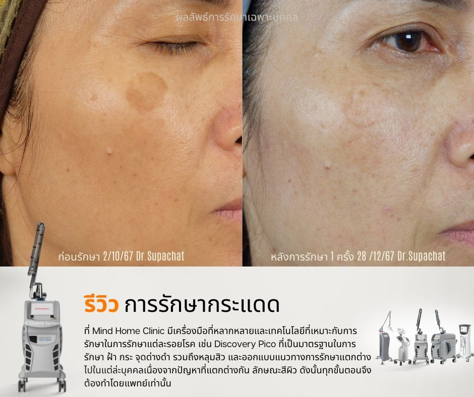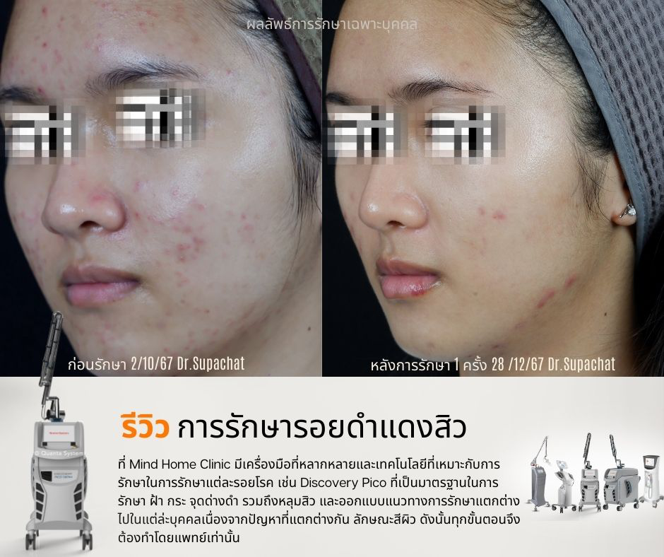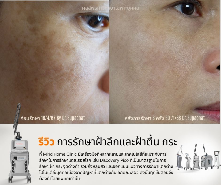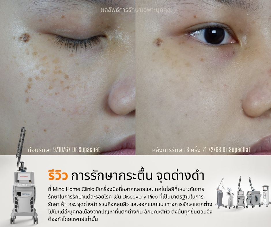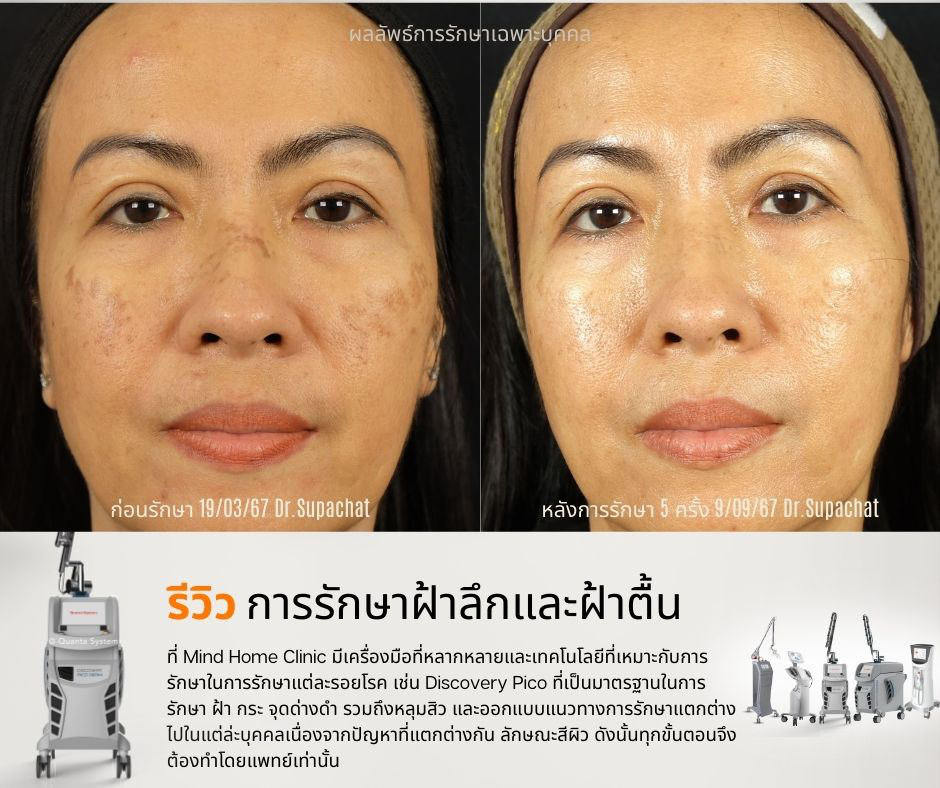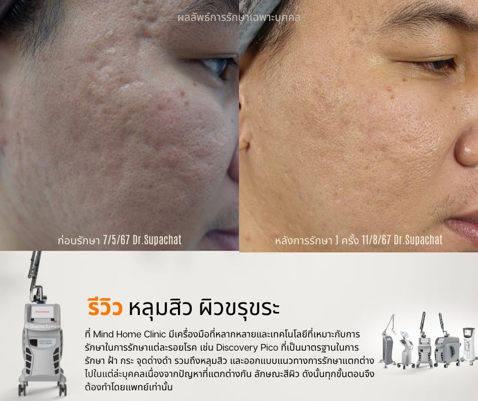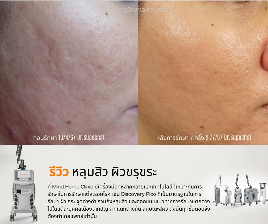 Mind Home Clinic เลือกใช้เครื่อง Discovery Pico Derm ซึ่งจัดเป็นเครื่องมือที่ได้มาตรฐานระดับโลก ผ่านการรับรองมาตรฐานของอเมริกา ยุโรป และไทย (US-FDA, TH-FDA, CE) มีมาตรฐานทุกขั้นตอนในการรักษา ตั้งแต่ประเมินวินิจฉัยโดยแพทย์เฉพาะทาง ถ่ายภาพก่อนการรักษาหรือติดตามผล ประเมินภาพถ่ายร่วมกันและวางแนวทางการรักษาร่วมกับแพทย์ ทำหัตถการโดยแพทย์ และติดตามอาการโดยแพทย์ท่านเดียว ทำให้การรักษาต่อเนื่องมีประสิทธิภาพสูงสุด